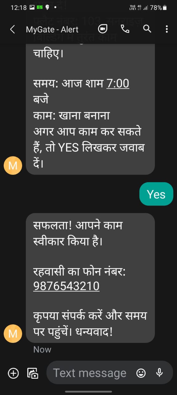 With inclusivity and technological literacy in mind, automated calls with response option ensures easy and efficient communication with maids.