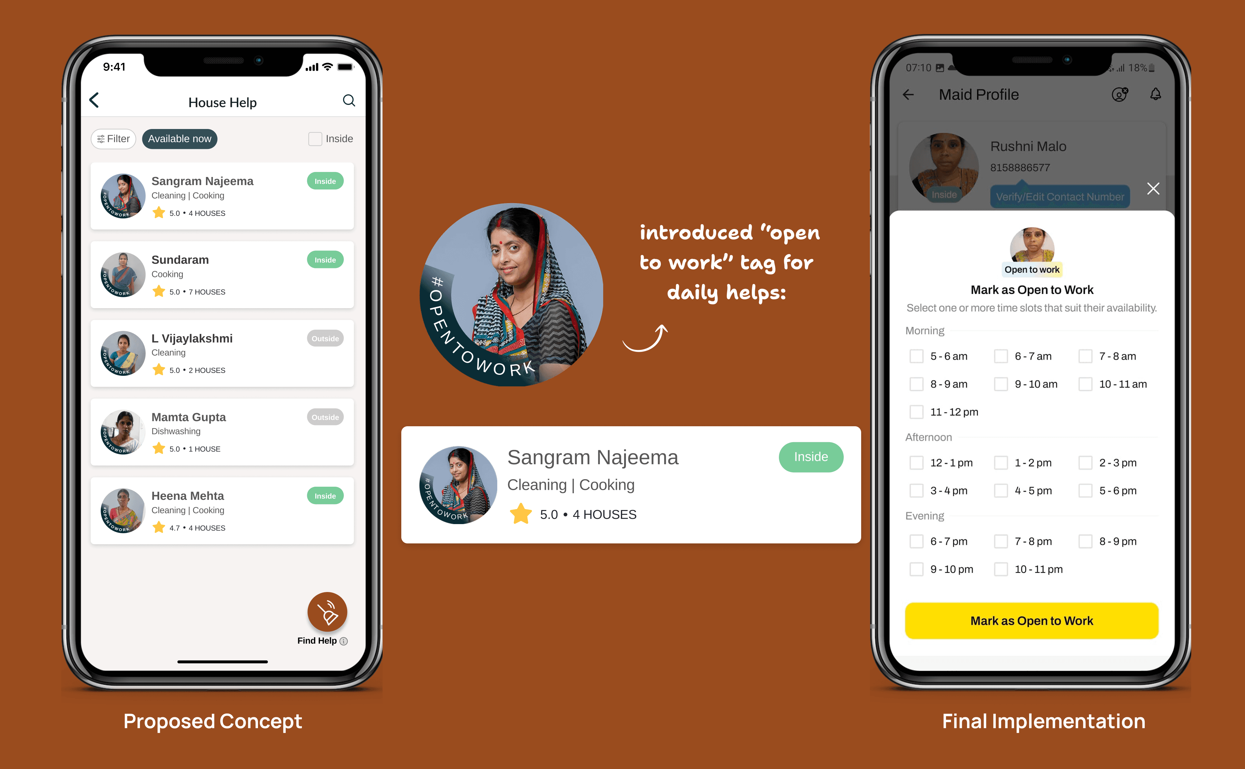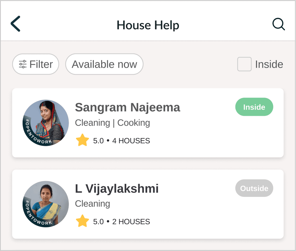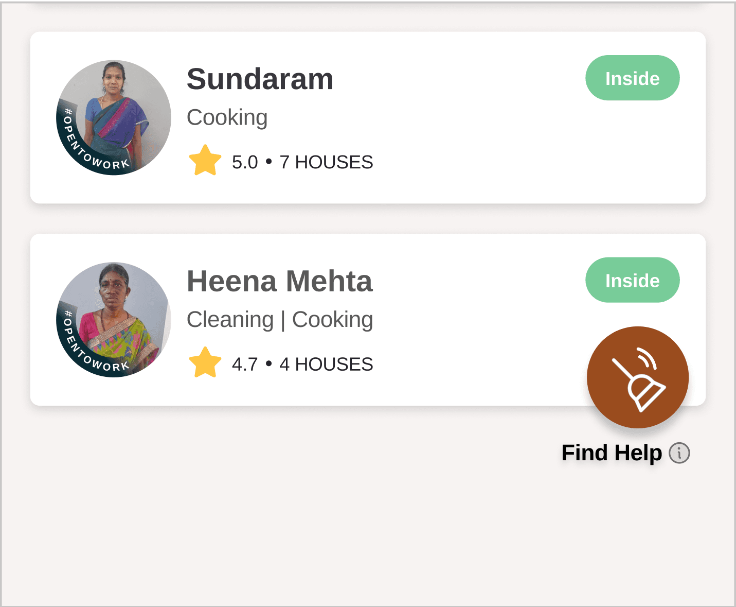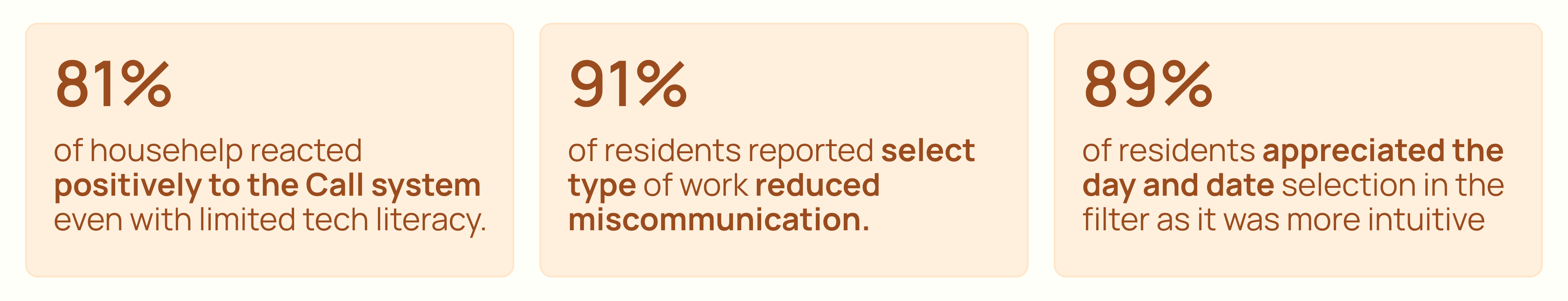 During testing, we observed that residents struggled to understand what Sahayak is and how it works. They expressed a preference for selecting househelps based on gender and wanted the option to book househelp in advance.