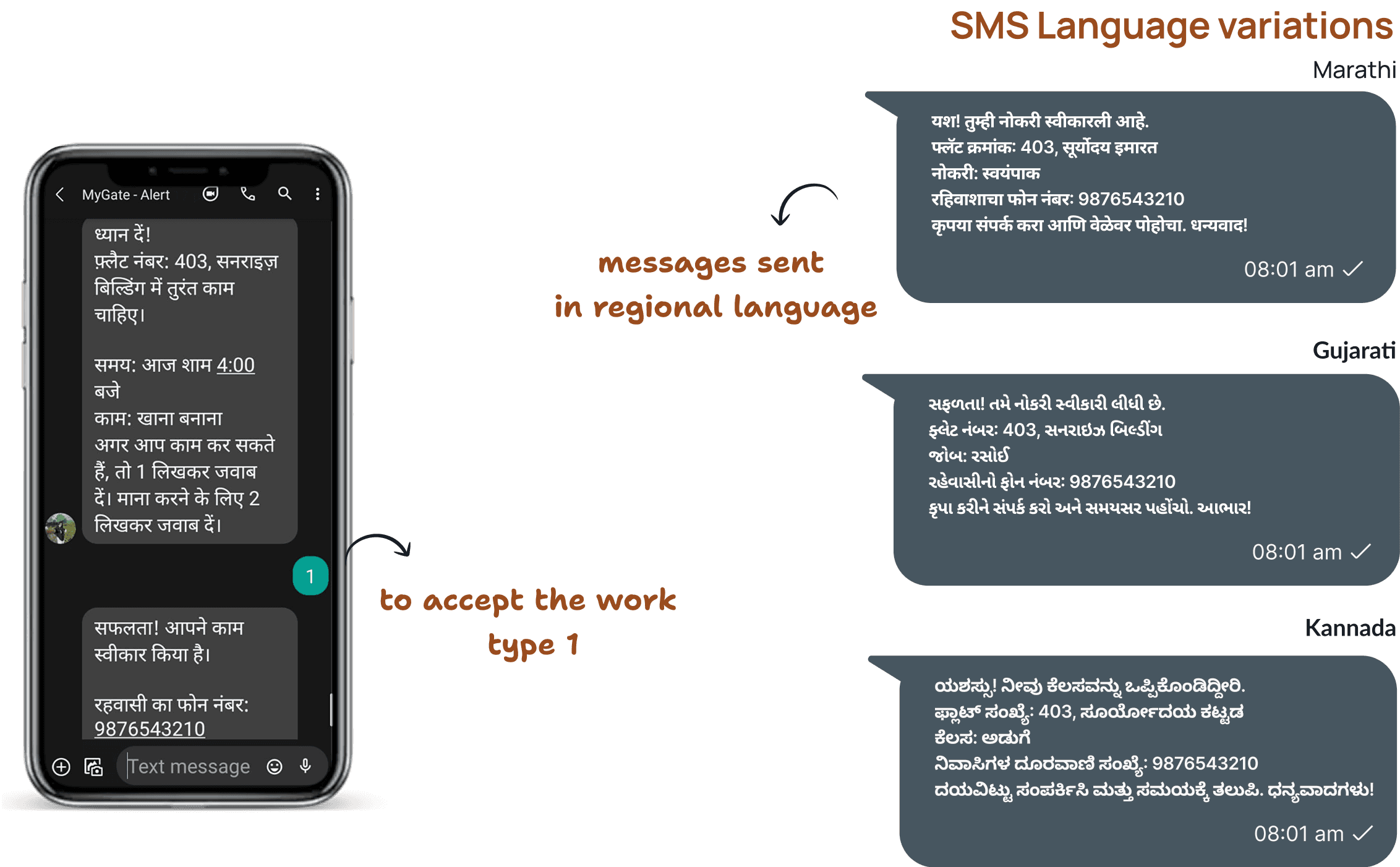 Facilitate seamless communication between domestic workers and residents regardless of which language they speak through automated calls and messages