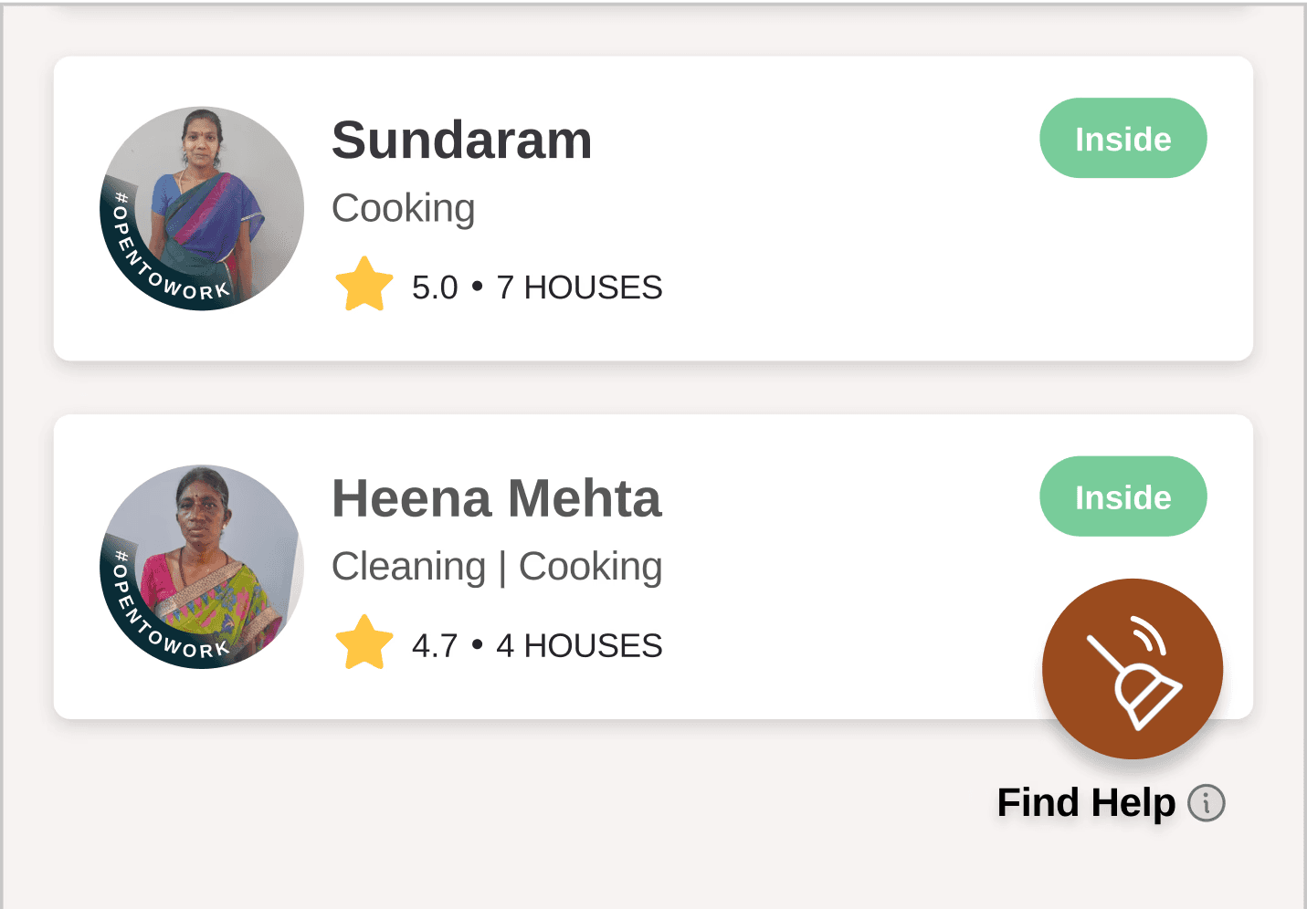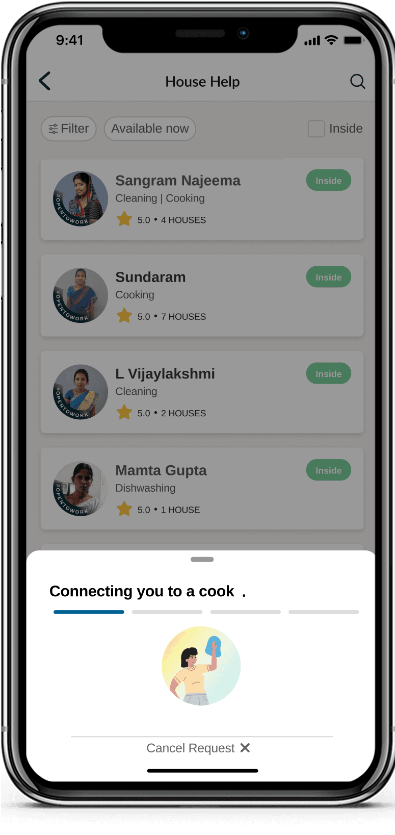 A system that enables residents connect with the right house help quickly in a few easy steps,